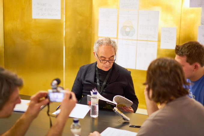 Tohle se nestalo v elBulli, v té době by mě to ani nenapadlo, protože jsme neměli čas na nic jiného než na elBulli. Bylo to o kreativitě a o tvorbě nových nápadů. Vždycky jsme však tímto způsobem pracovali jako třeba naše knihy, v nichž jsou úvahy a analýzy. Tohle vše se stalo až v době, kdy se elBulli změnila na elBulliFoundation, kdy jsme si to uvědomili. Začali jsme ve 3 lidech a začali jsme si klást otázku, co je to vaření, kde je počátek vaření, a v tom momentu jsme si řekli, že než začneme znovu tvořit, musíme všemu porozumět, jen jsme netušili, že nám to bude trvat 5 let. Teprve teď začínáme být schopní vše vysvětlit.