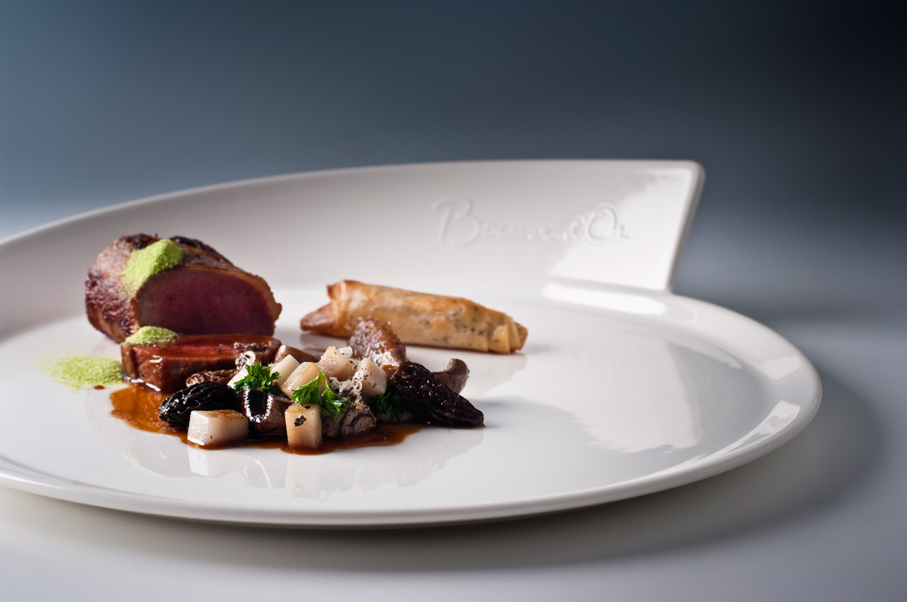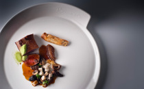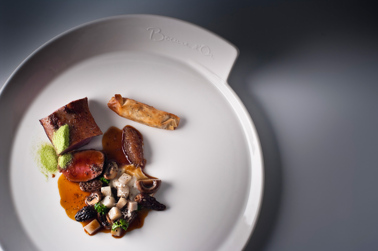 Jehněčí hřbet a křupavý brzlík s lehce zauzenými houbami, topinamburem a krémovou lanýžovou omáčkou